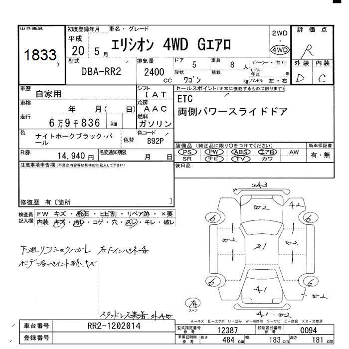 HONDA ELYSION 4WD G AERO - лот 1833