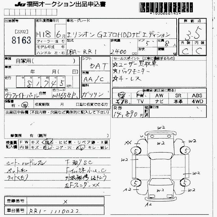 HONDA ELYSION G AERO HDD NAVI EDITION - лот 8163
