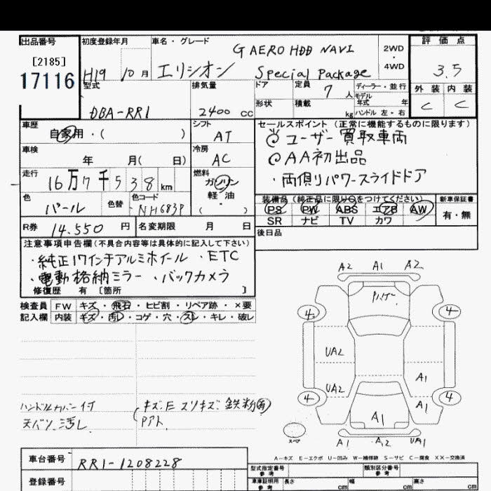 HONDA ELYSION G AERO HDD NAVIGATION SPECIAL PACKAGE 7 PERSON - лот 17116