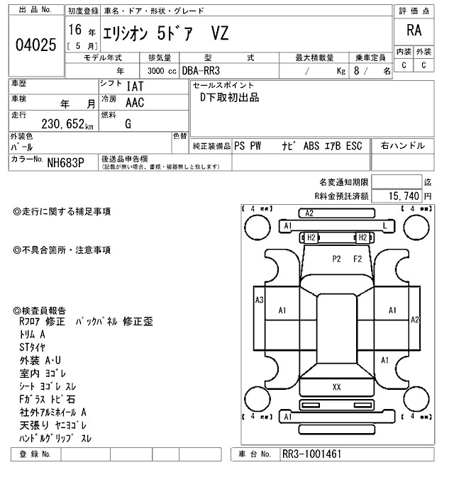 HONDA ELYSION VZ - лот 4025