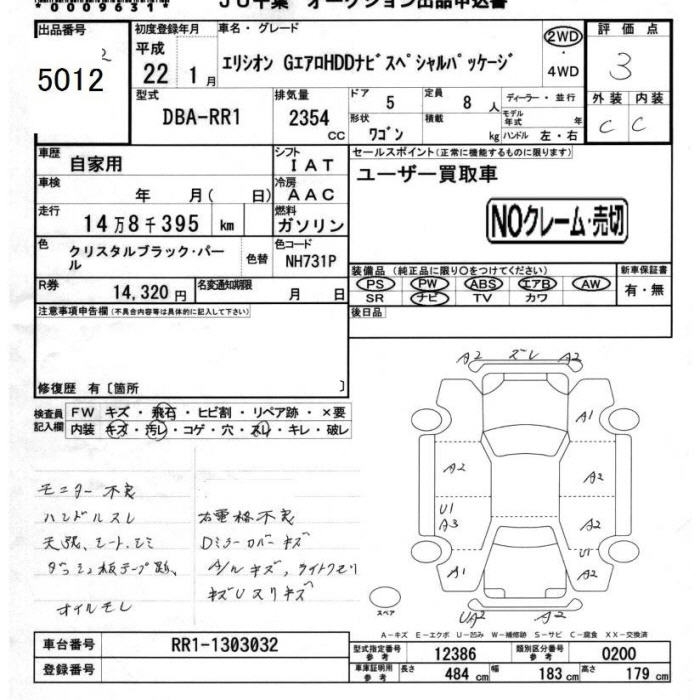 HONDA ELYSION G AERO HDD NAVIGATION SPECIAL PACKAGE - лот 5012