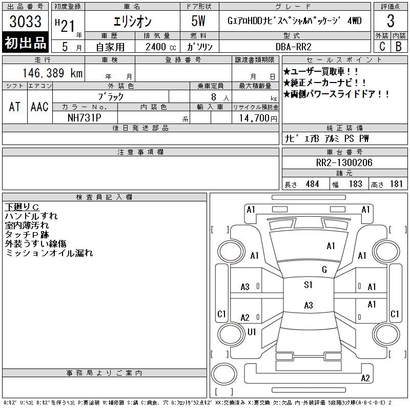 HONDA ELYSION G AERO HDD NAVIGATION SPECIAL 4WD - лот 3033
