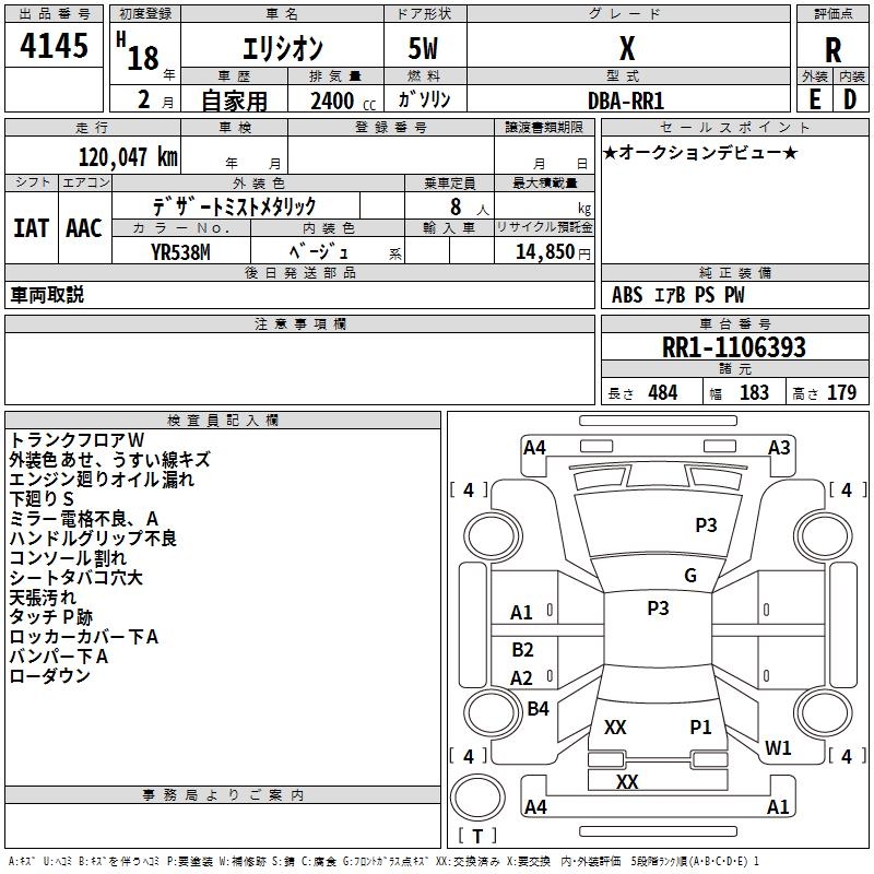 HONDA ELYSION X - лот 4145