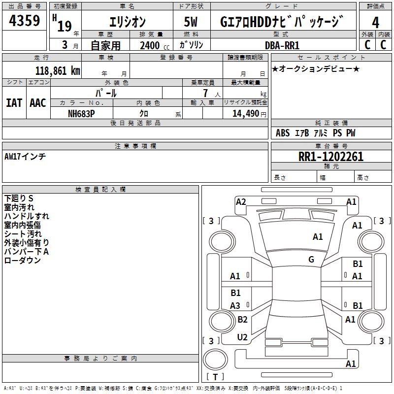 HONDA ELYSION G AERO HDD NAVIGATION PACKAGE - лот 4359