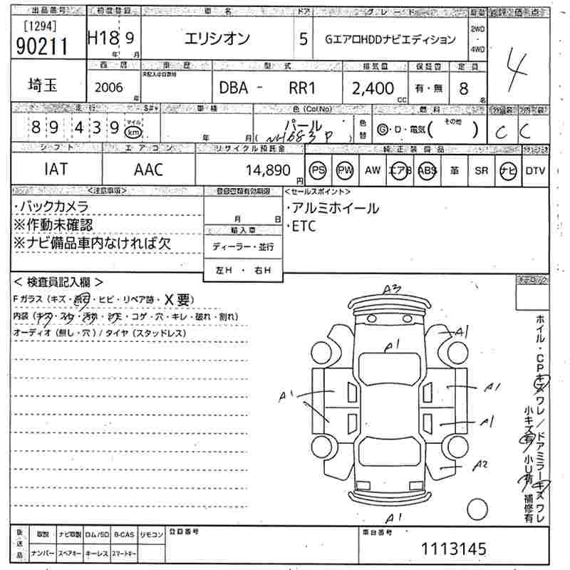 HONDA ELYSION G AERO HDD NAVI EDITION - лот 90211