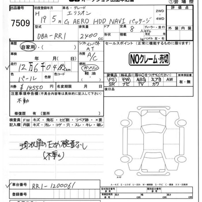 HONDA ELYSION G AERO HDD NAVIGATION PACKAGE - лот 7509