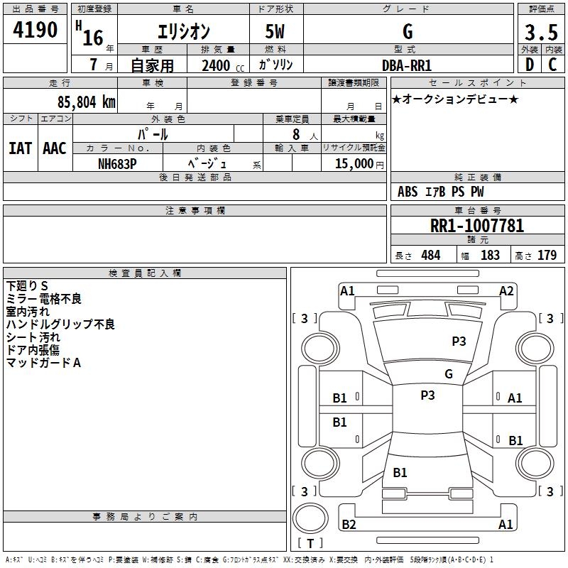 HONDA ELYSION G - лот 4190
