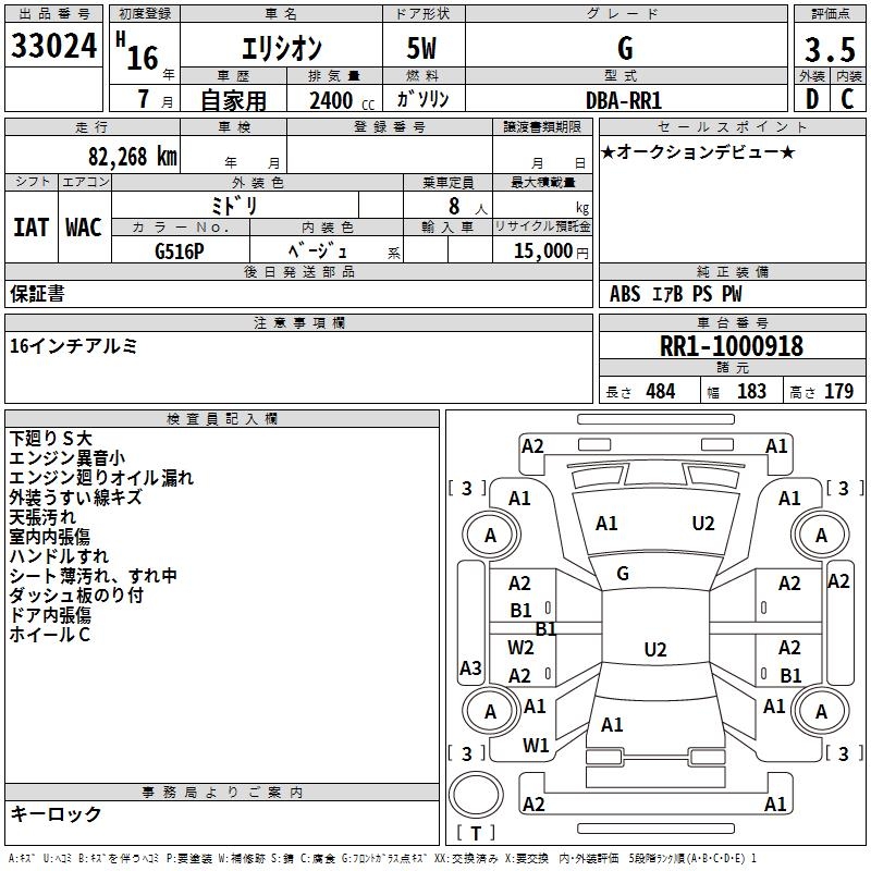 HONDA ELYSION G - лот 33024