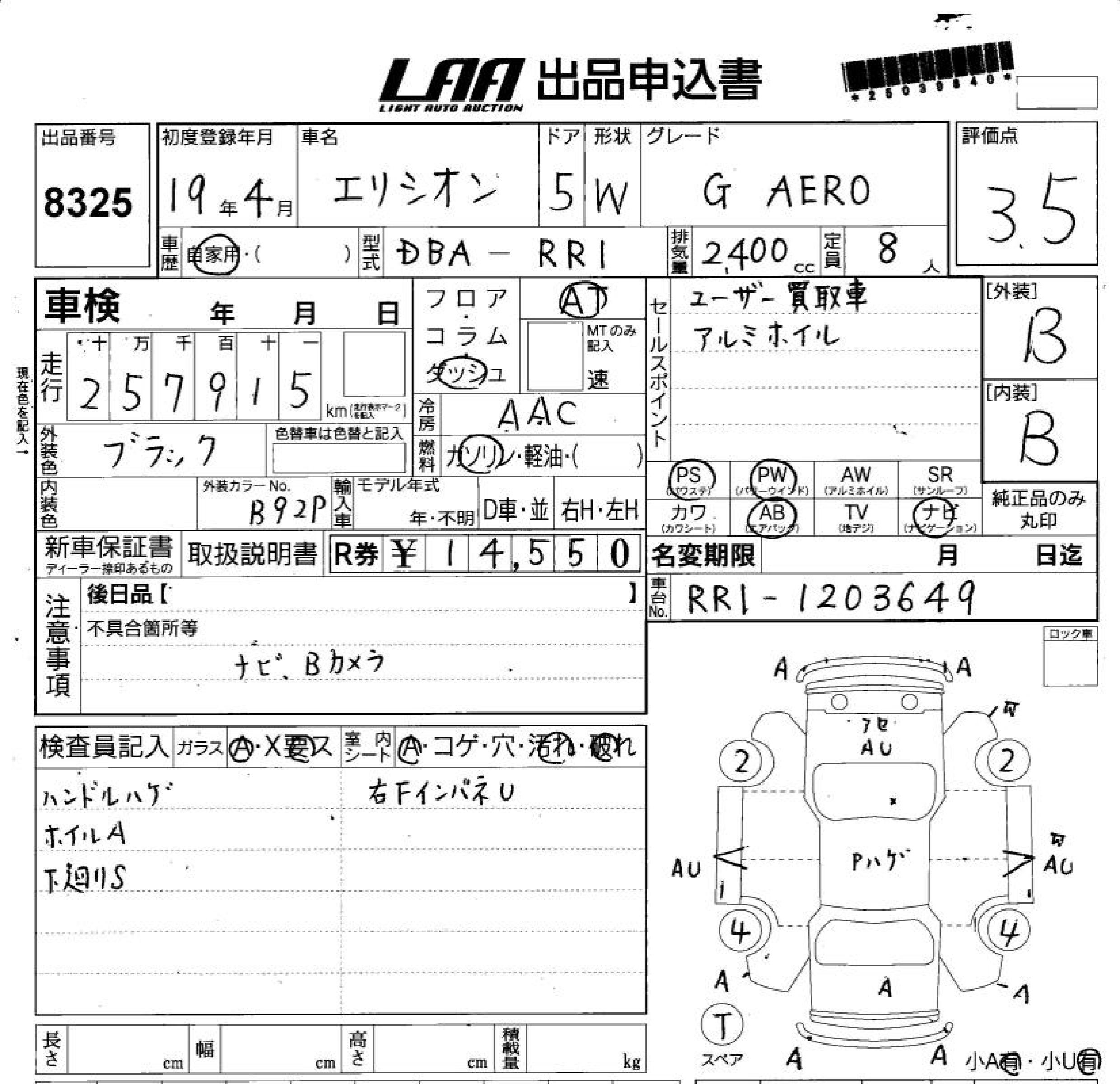 Все аукционы HONDA ELYSION