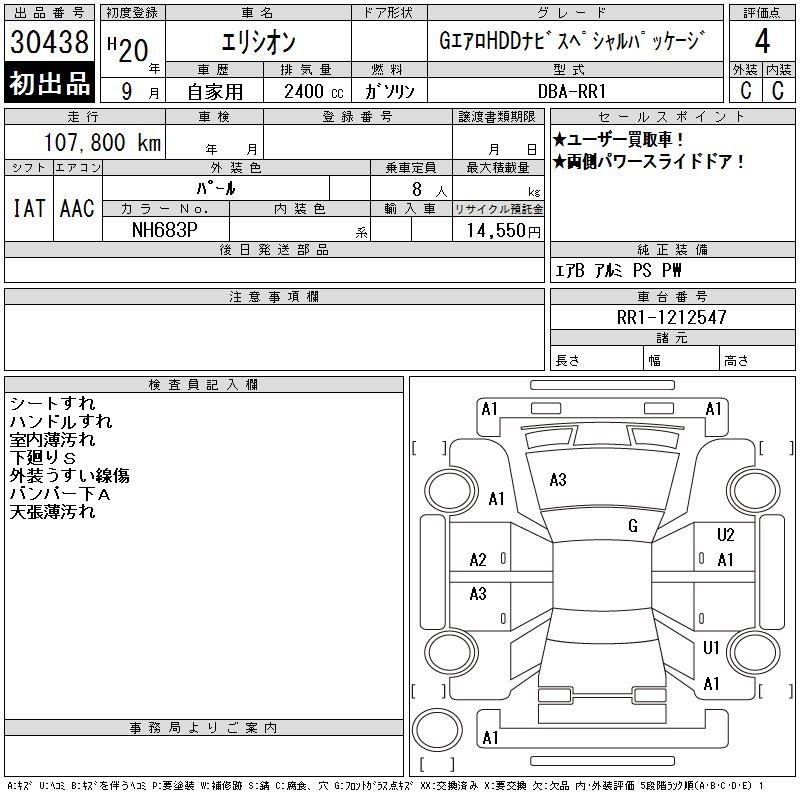 HONDA ELYSION G AERO HDD NAVIGATION SPECIAL PACK - лот 30438
