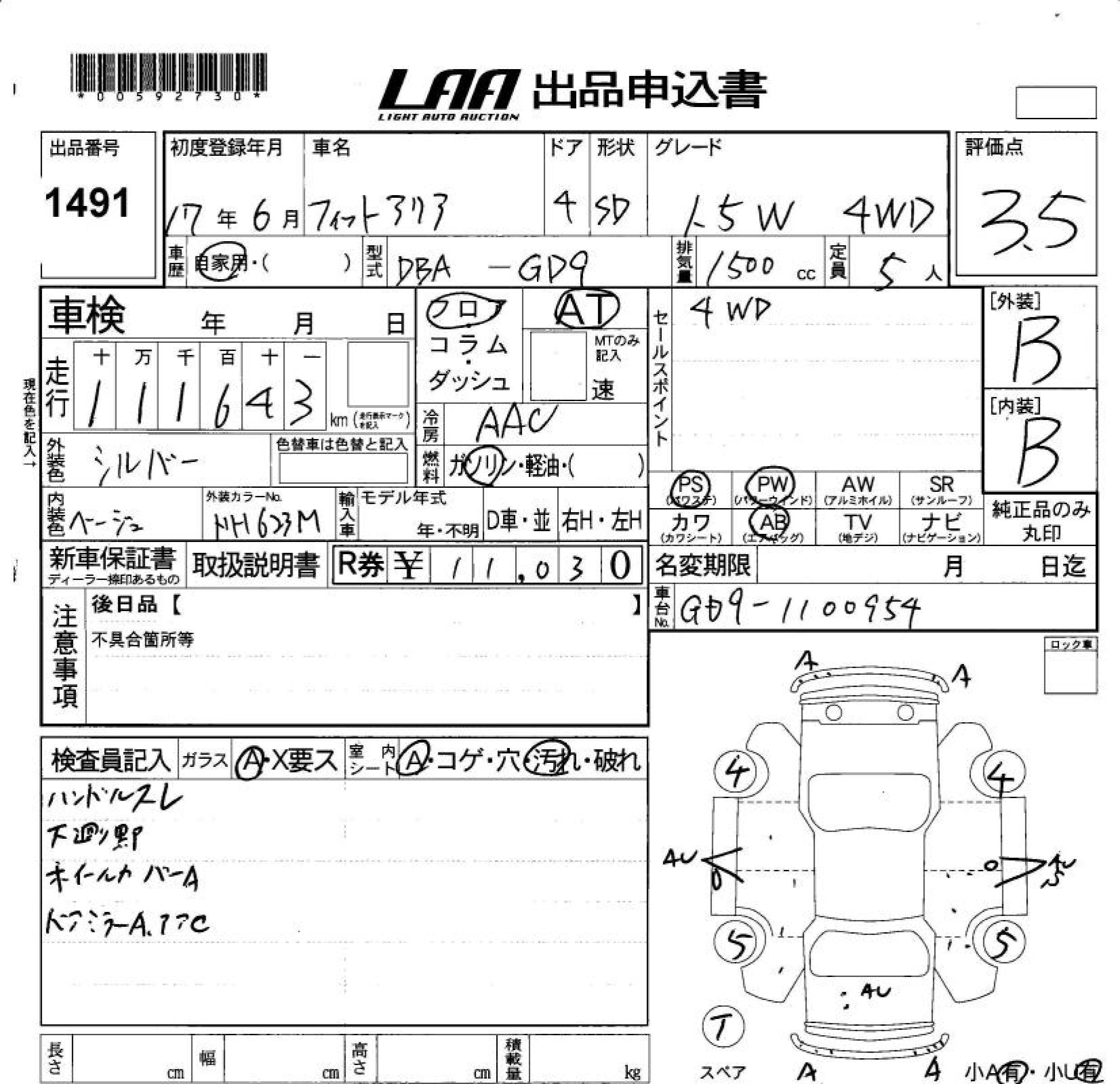 HONDA FIT ARIA - лот 1491