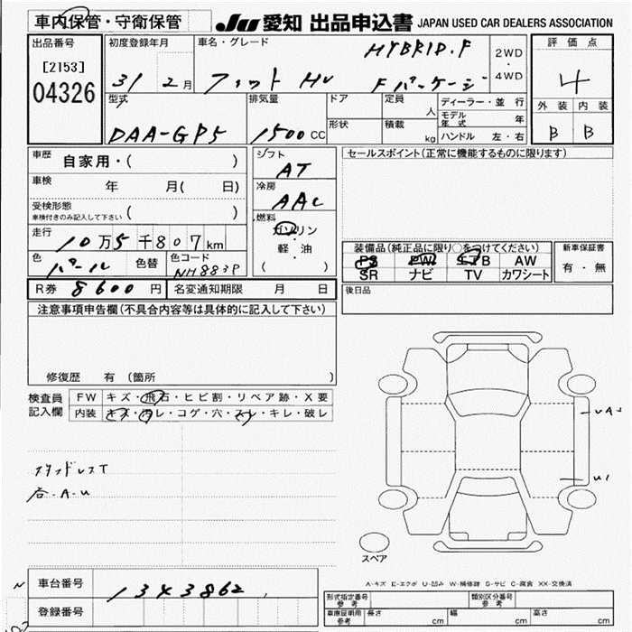 HONDA FIT HYBRID - лот 4326