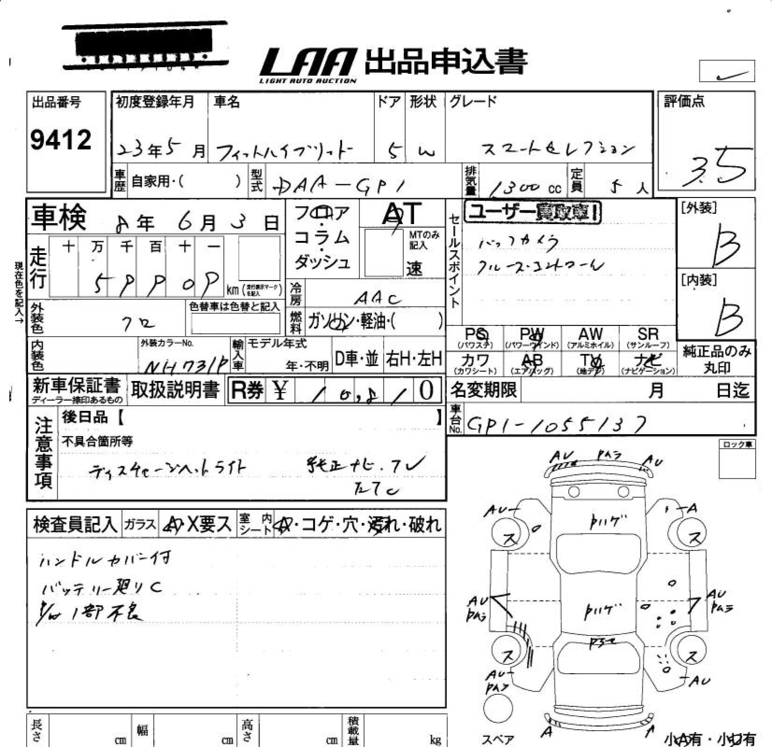 HONDA FIT HYBRID - лот 9412