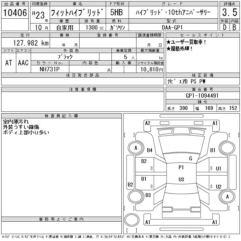HONDA FIT HYBRID - лот 10406