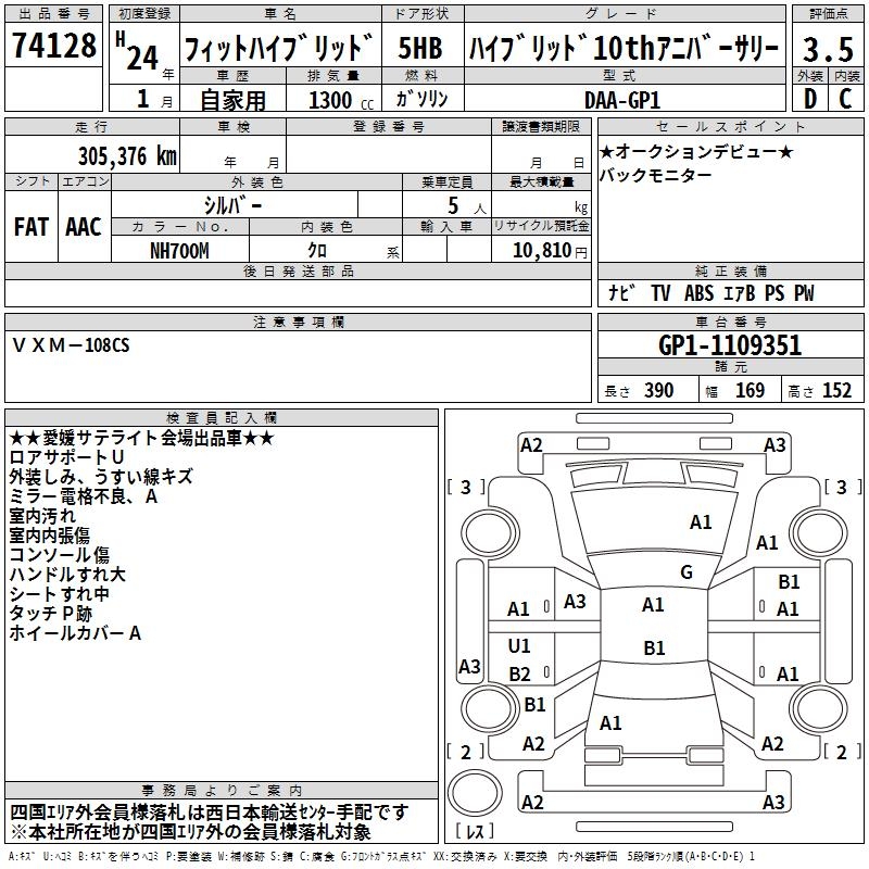 HONDA FIT HYBRID - лот 74128