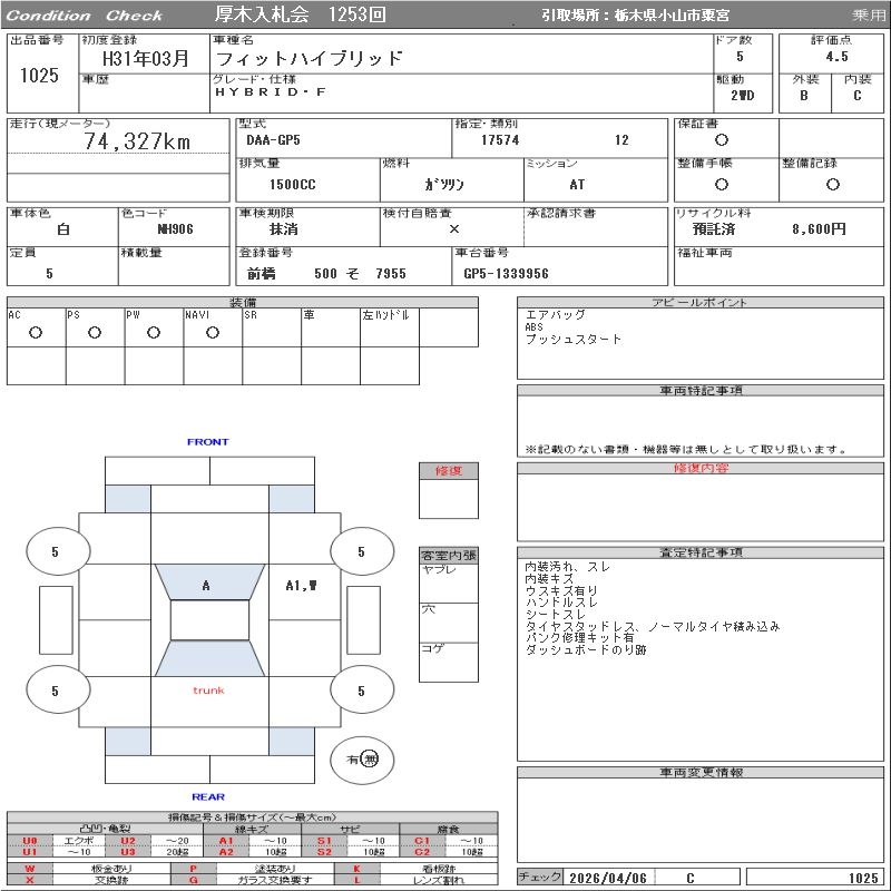 HONDA FIT HYBRID - лот 1025