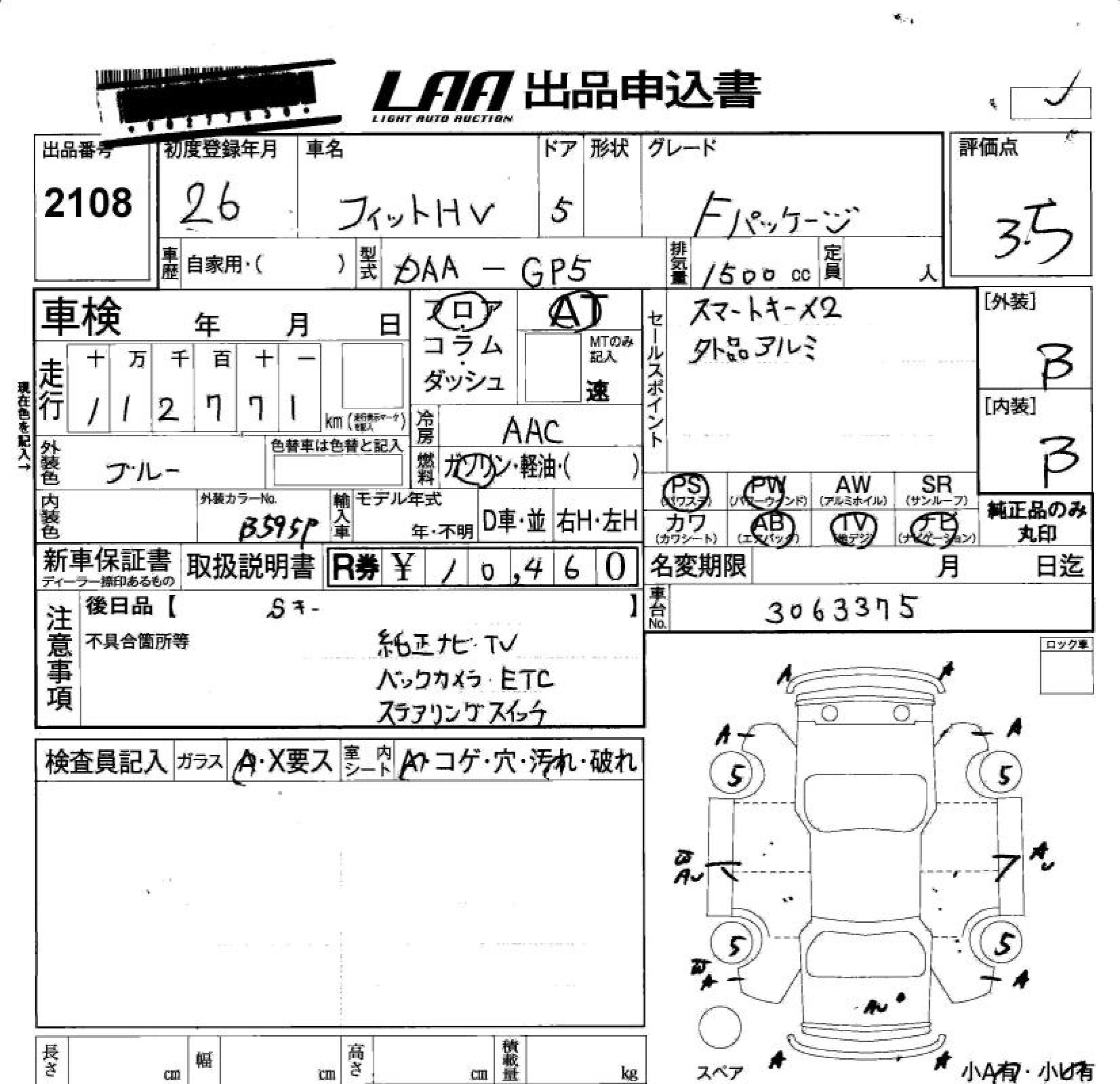 HONDA FIT HYBRID - лот 2108