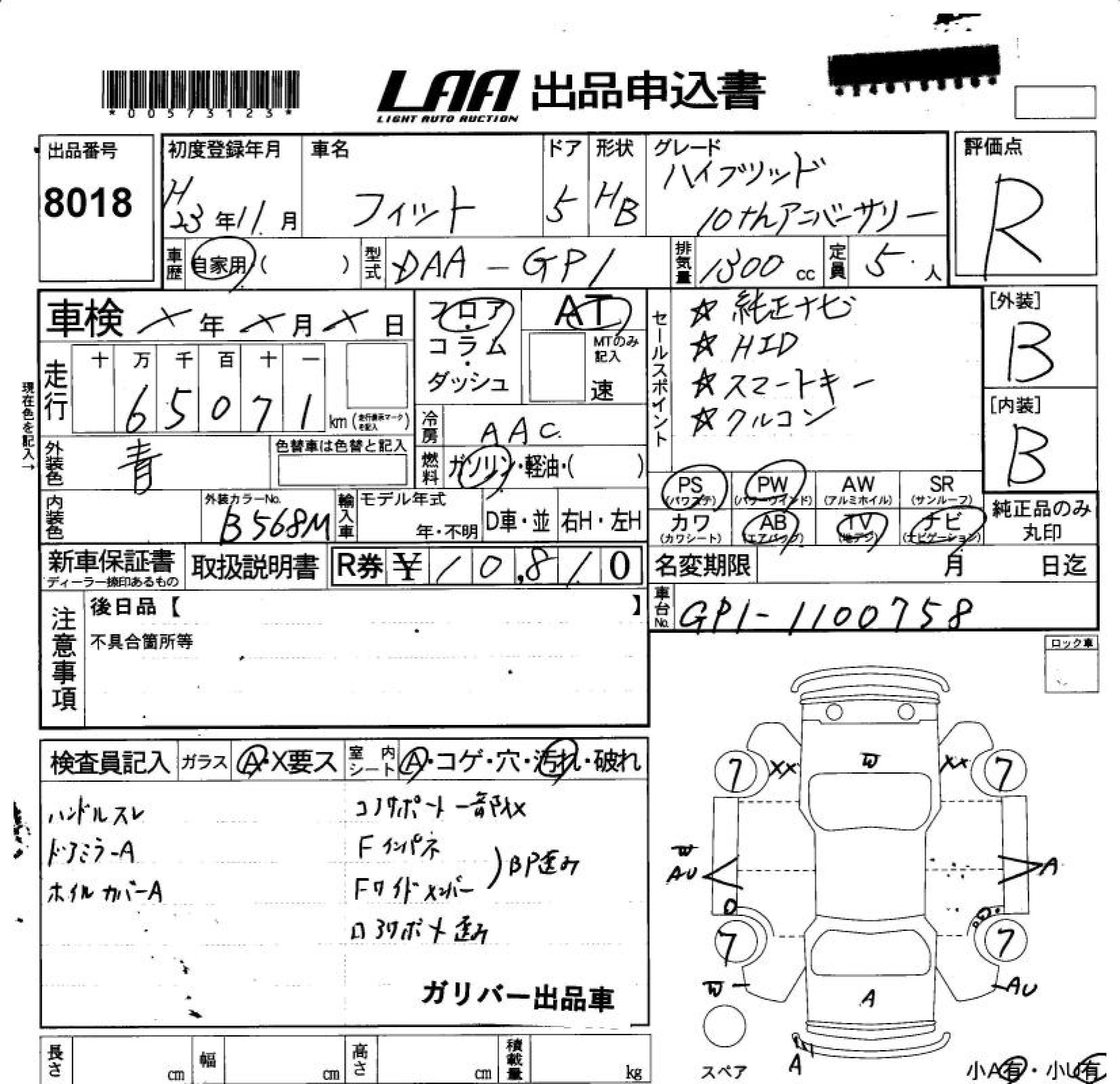 HONDA FIT HYBRID - лот 8018