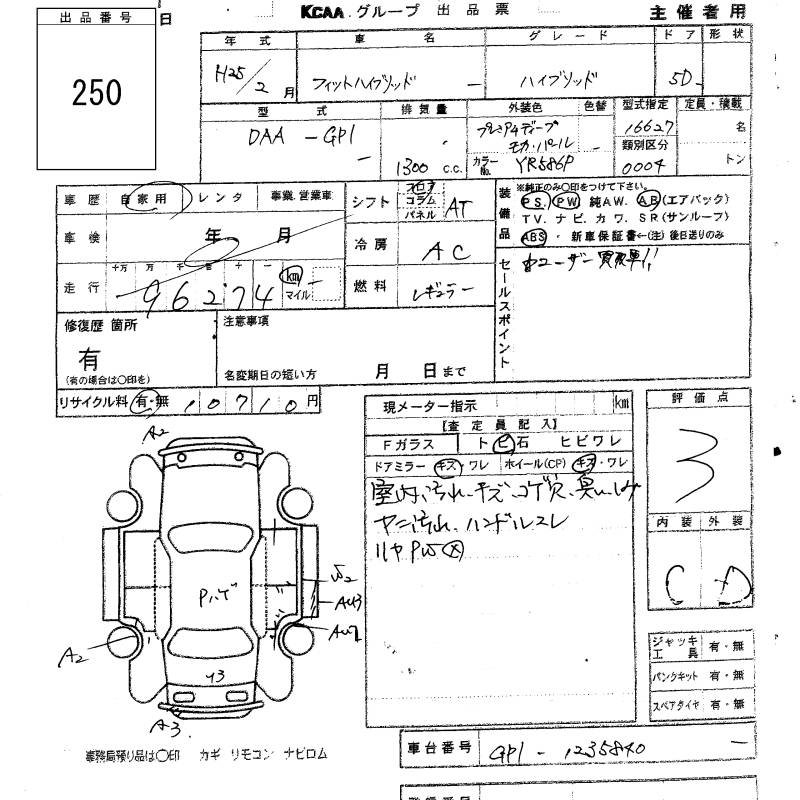 HONDA FIT HYBRID - лот 250