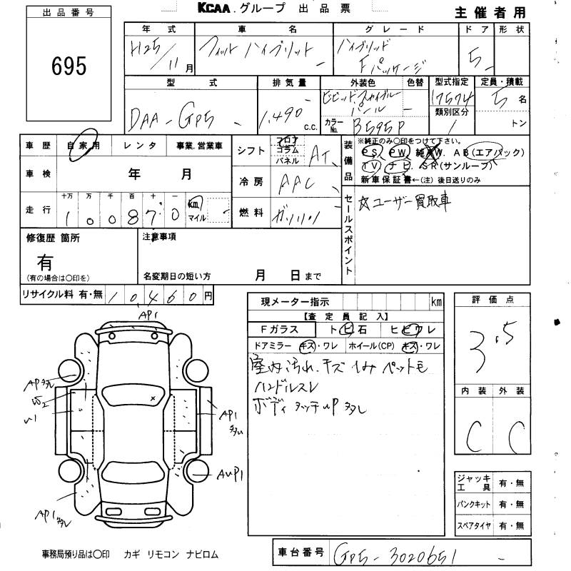 HONDA FIT HYBRID - лот 695
