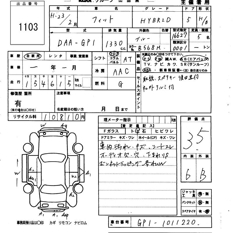 HONDA FIT HYBRID - лот 1103