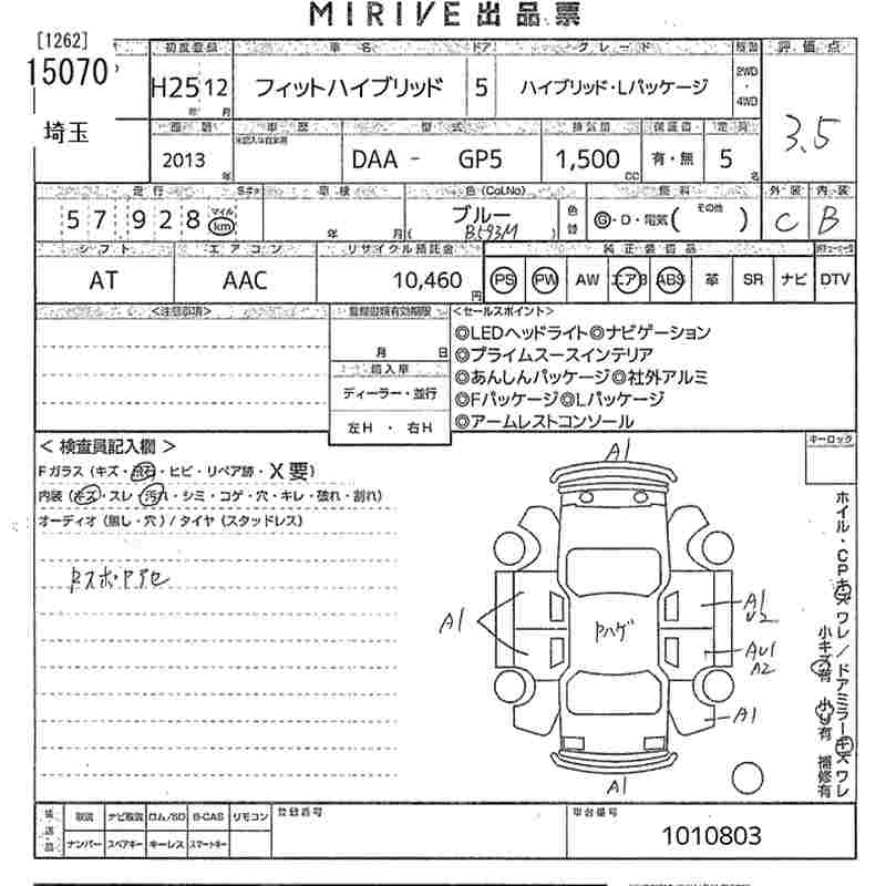 HONDA FIT HYBRID - лот 15070