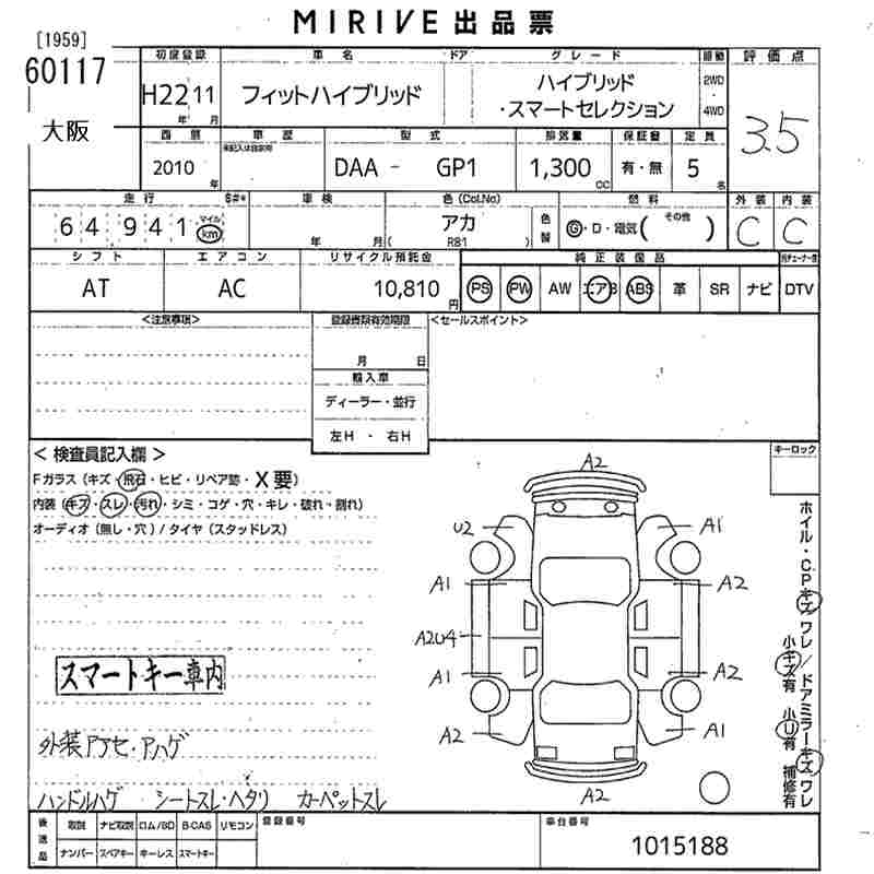 HONDA FIT HYBRID - лот 60117