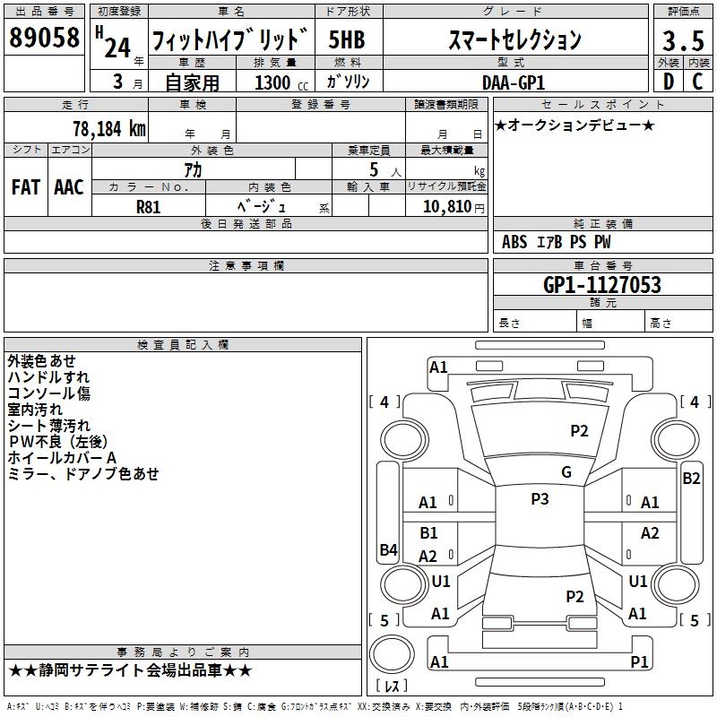 HONDA FIT HYBRID - лот 89058