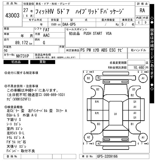 HONDA FIT HYBRID - лот 43003