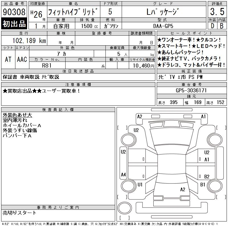 HONDA FIT HYBRID - лот 90308