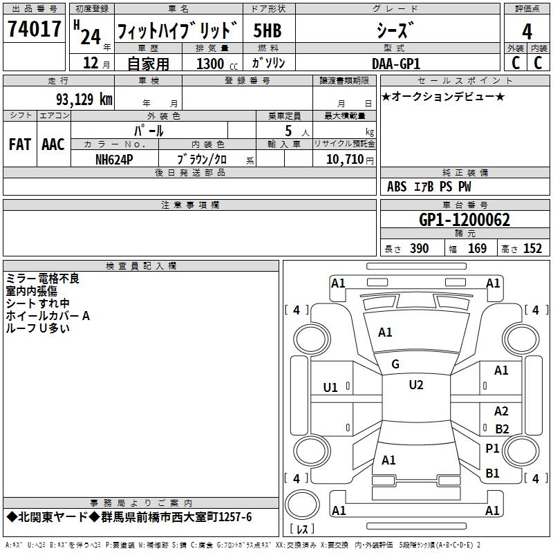 HONDA FIT HYBRID - лот 74017