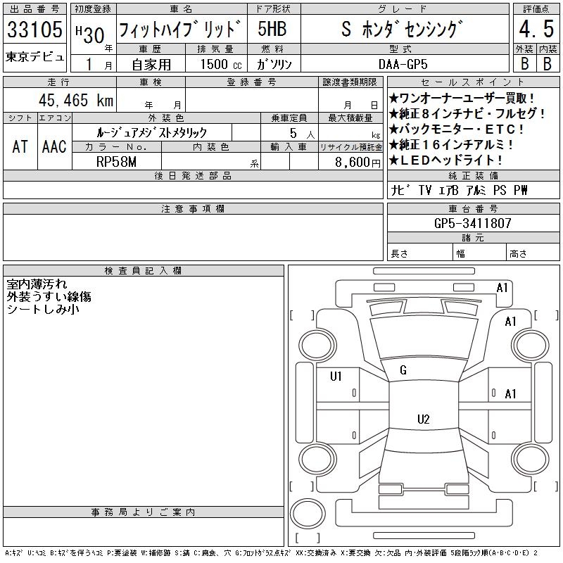 HONDA FIT HYBRID - лот 33105