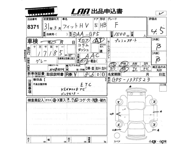 HONDA FIT HYBRID - лот 8371