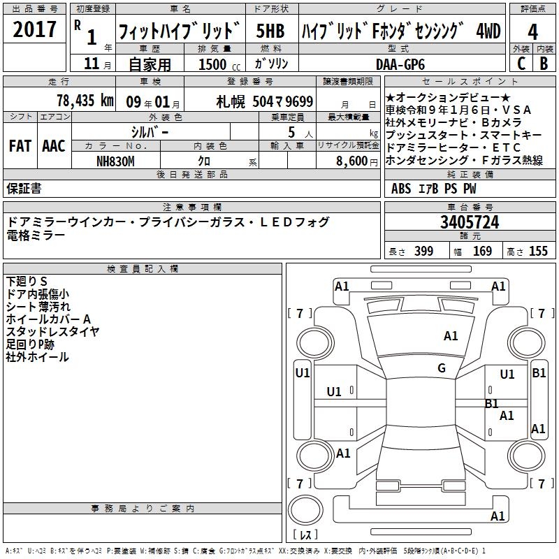 HONDA FIT HYBRID HYBRID F HONDA SENSI4WD - лот 2017