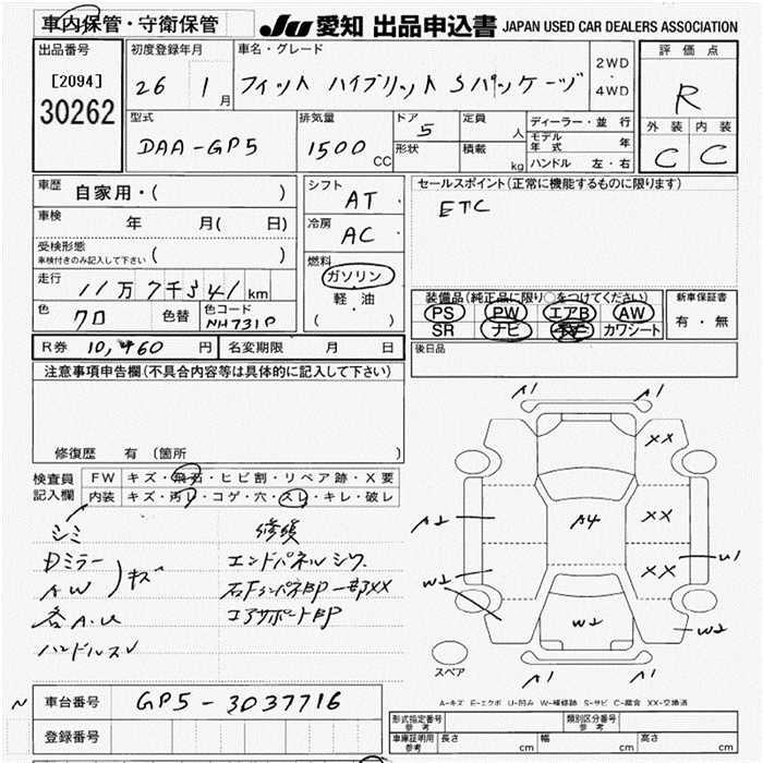 HONDA FIT HYBRID S PACKAGE - лот 30262