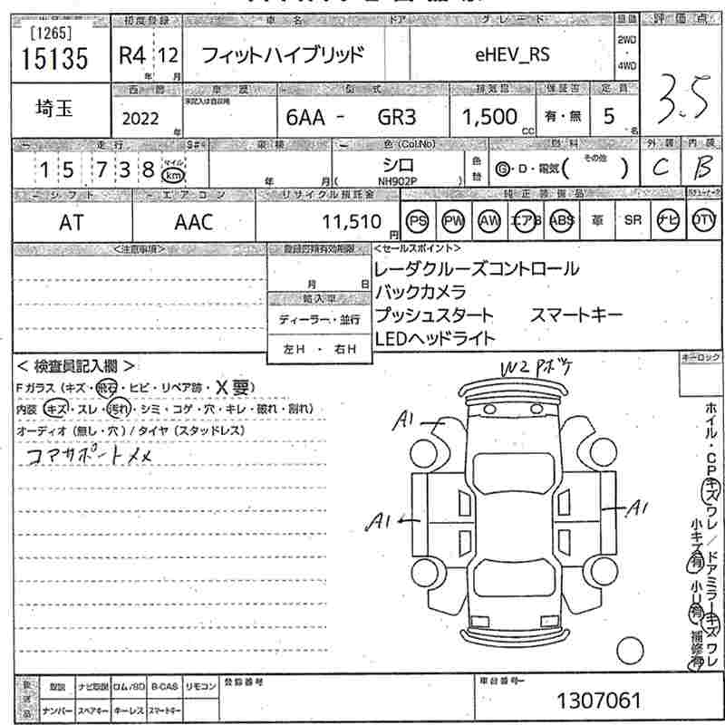 HONDA FIT HYBRID eHEV_RS - лот 15135
