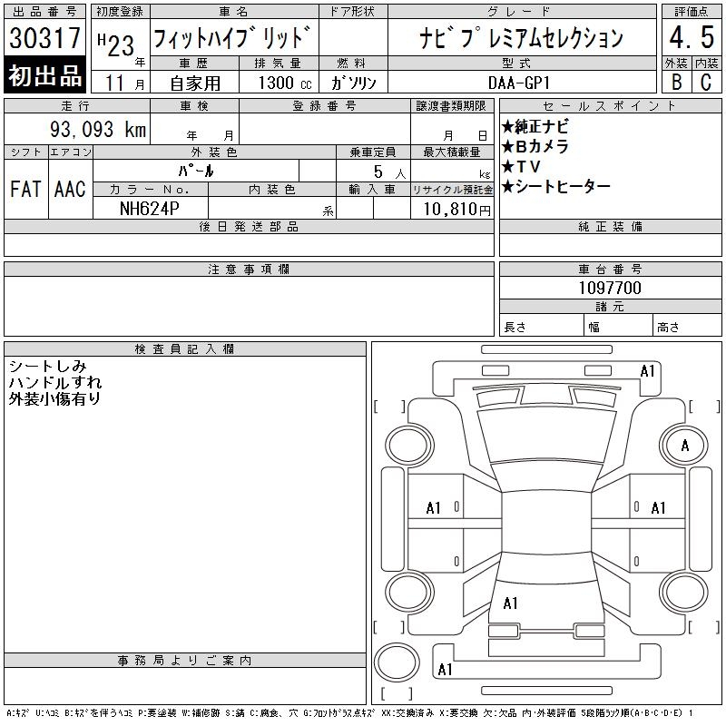 HONDA FIT HYBRID NAVIGATION PREMIUM SELECTION - лот 30317