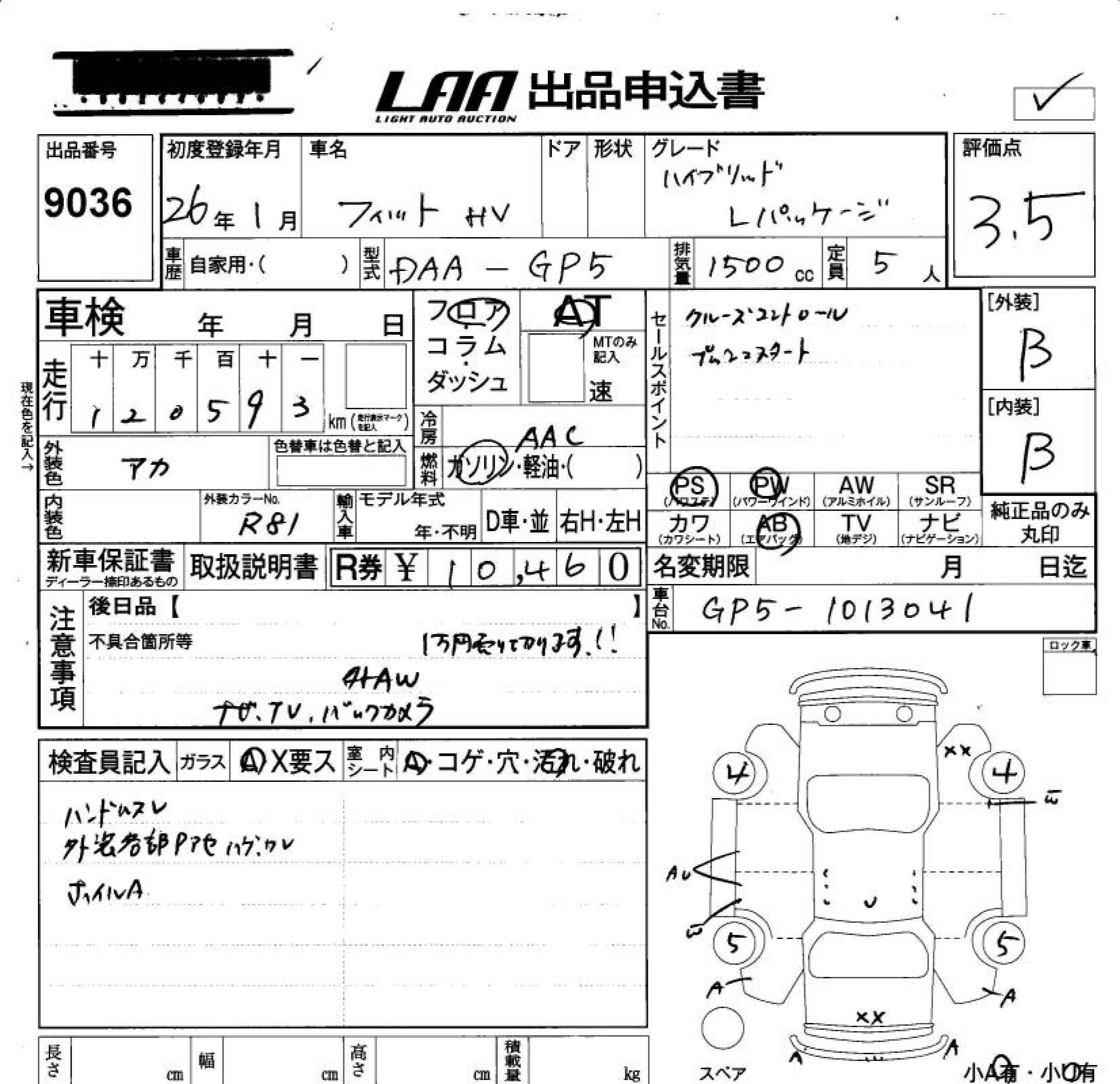 HONDA FIT HYBRID HYBRID *L PACKAGE - лот 9036