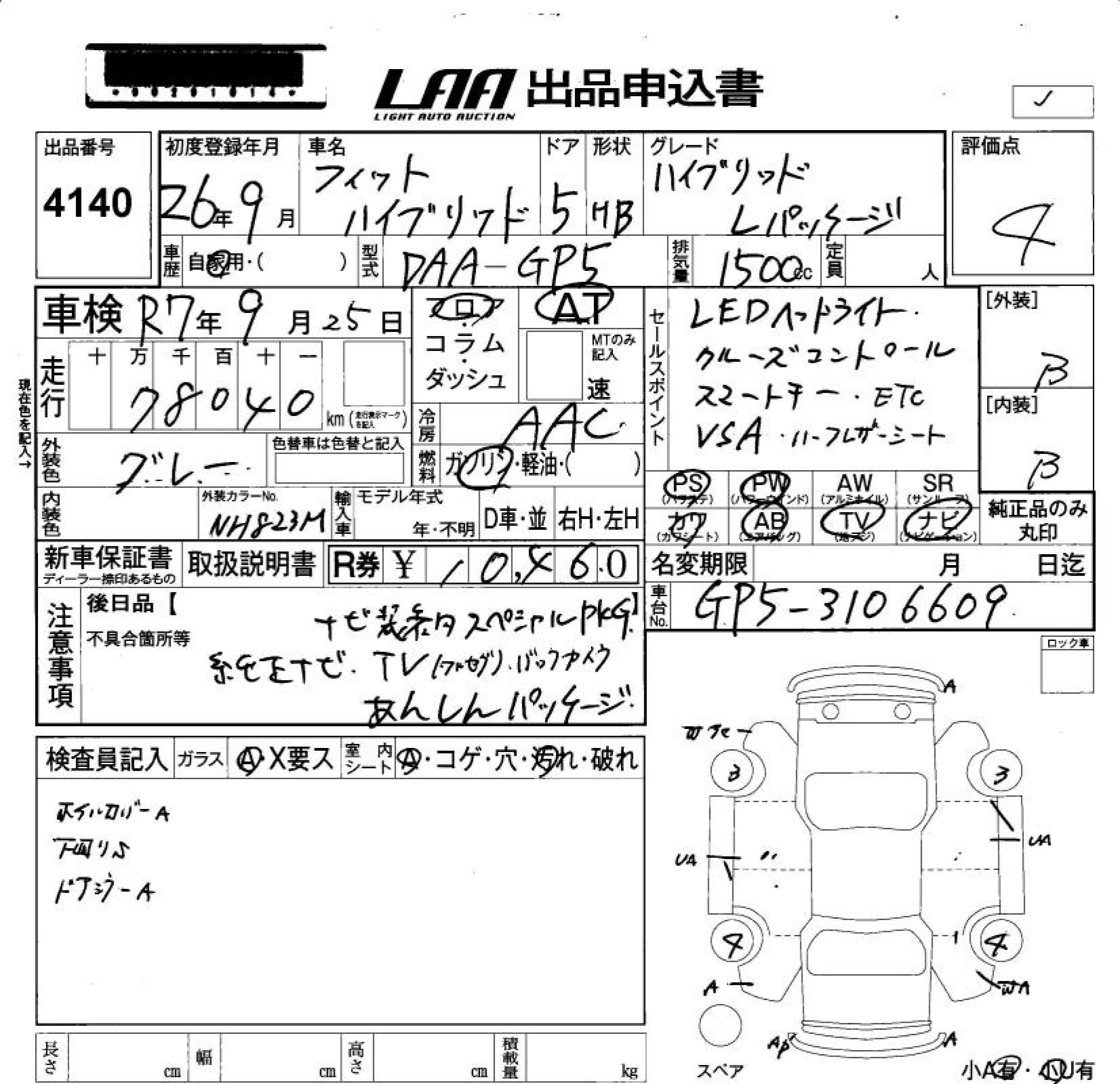 HONDA FIT HYBRID HYBRID *L PACKAGE - лот 4140