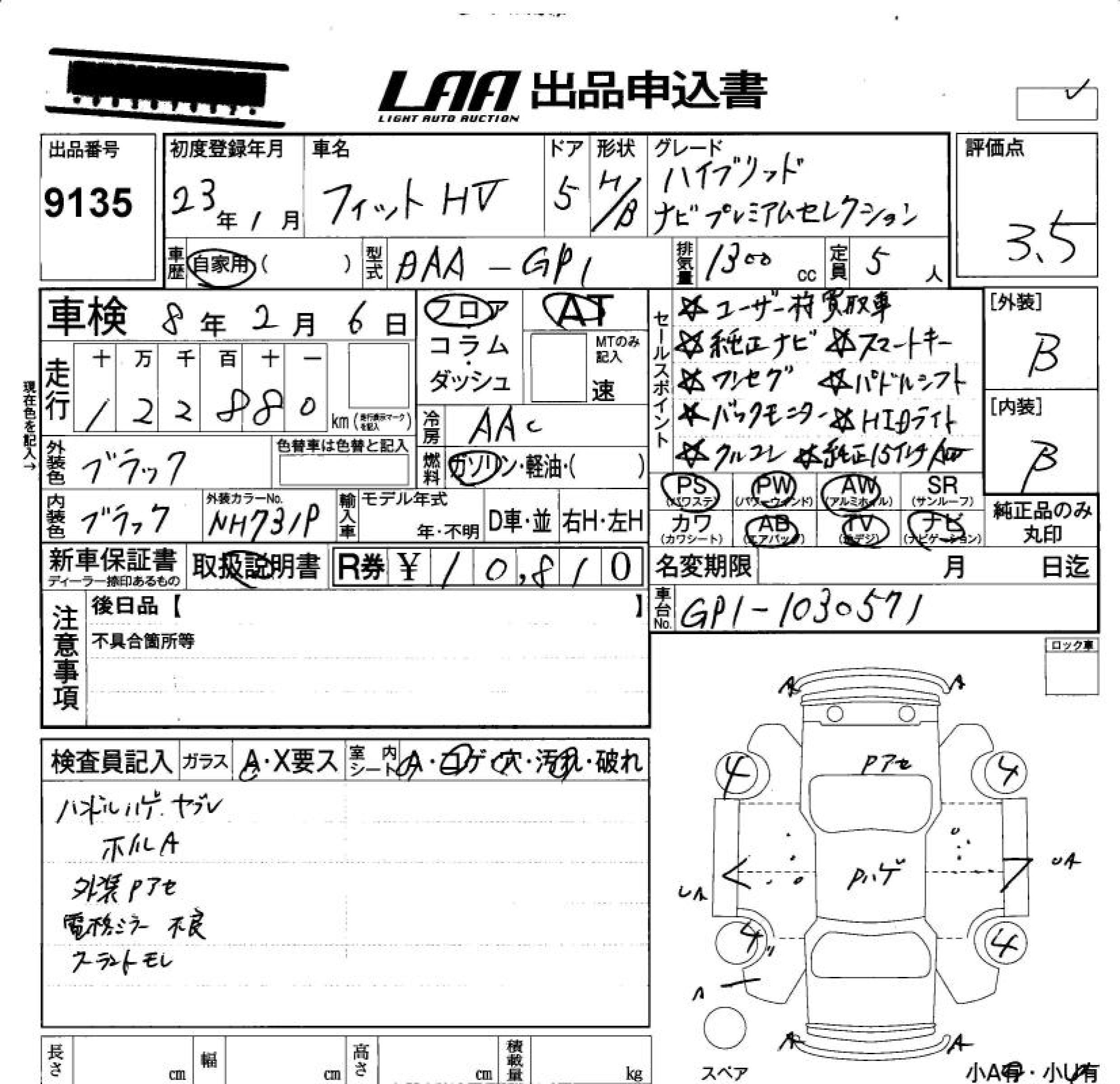 HONDA FIT HYBRID HYBRID * NAVIGATION PREMIUM SE - лот 9135
