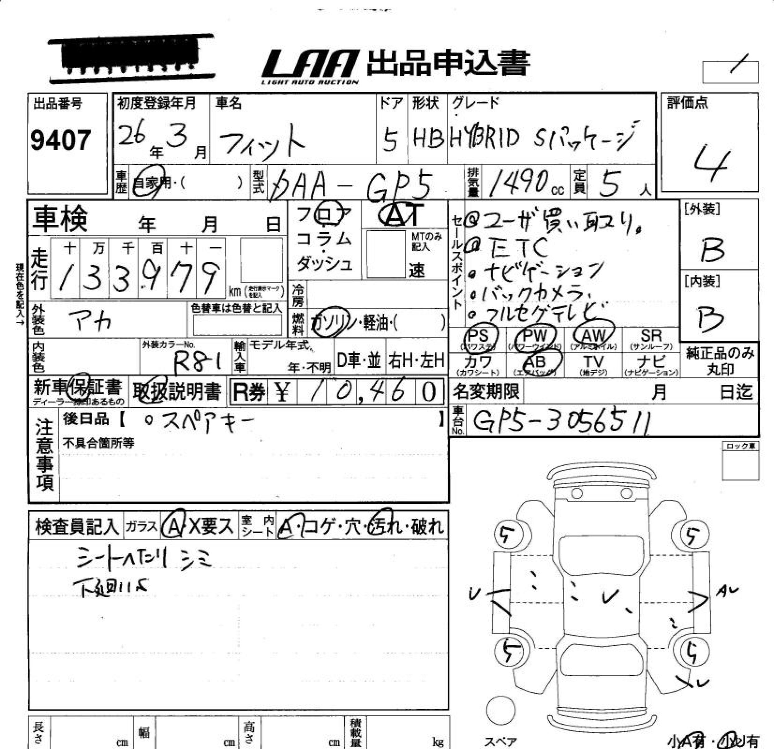 HONDA FIT HYBRID HYBRID *S PACKAGE - лот 9407