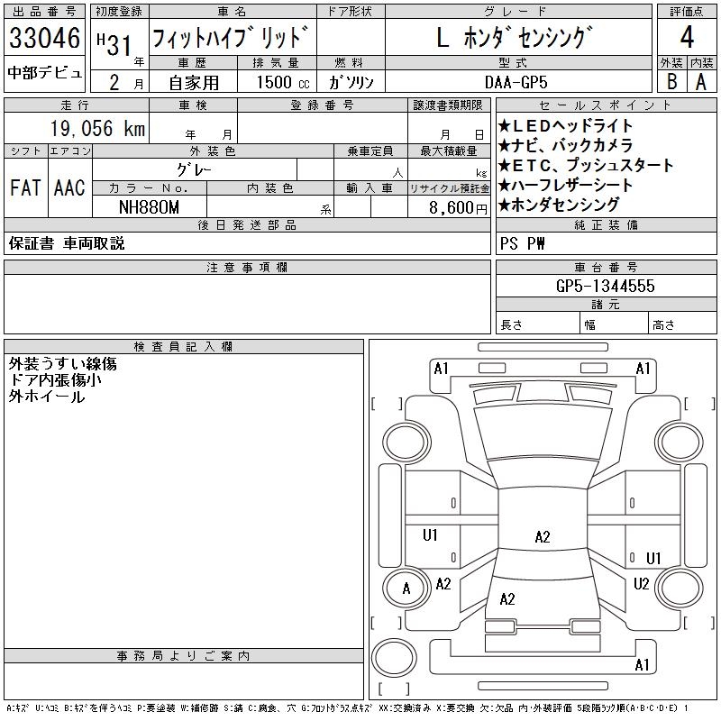 HONDA FIT HYBRID L HONDA SENSING - лот 33046