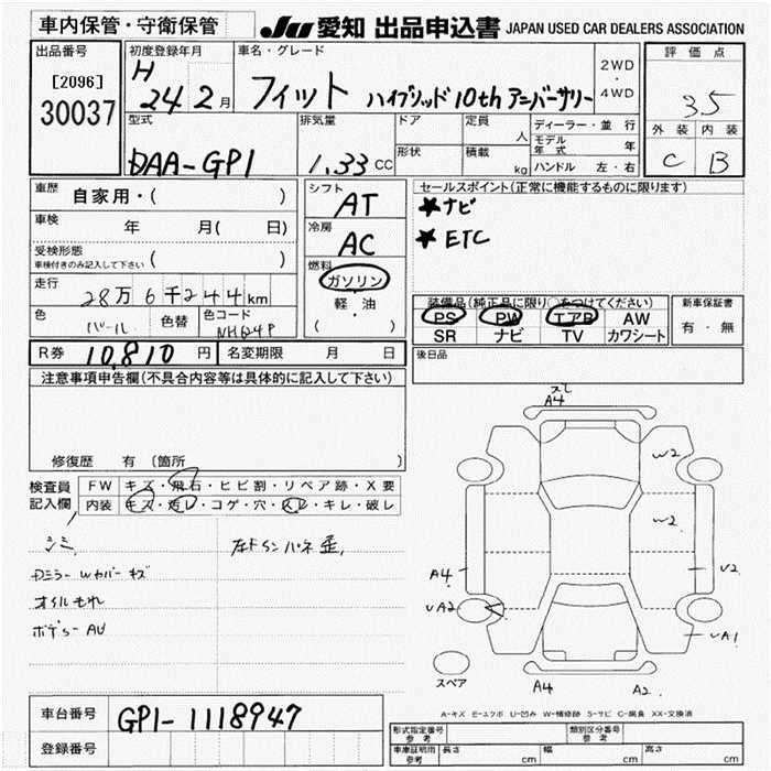 HONDA FIT HYBRID 10TH ANNIVERSARY - лот 30037