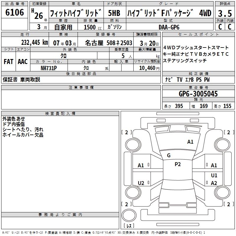 HONDA FIT HYBRID HYBRID F PACKAGE 4WD - лот 6106