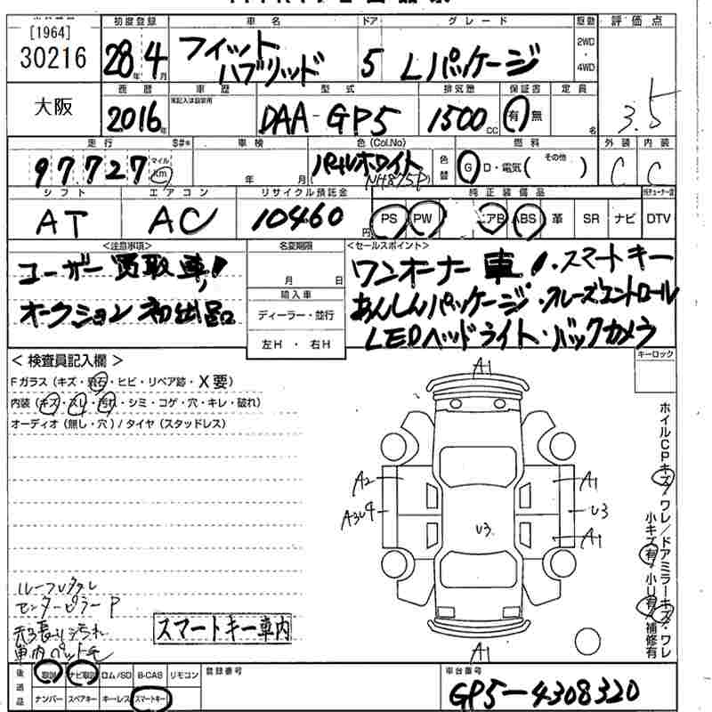 HONDA FIT HYBRID HYBRID *L PACKAGE - лот 30216