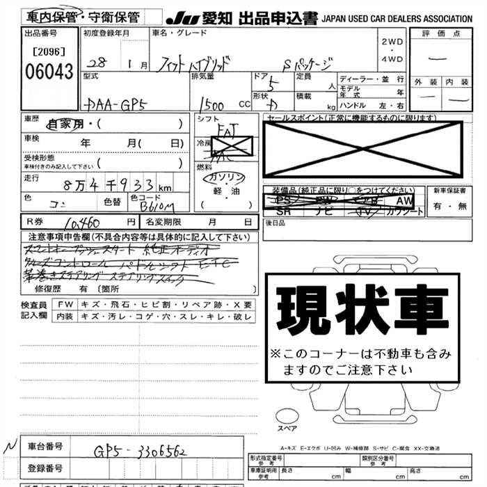 HONDA FIT HYBRID S PACKAGE - лот 6043
