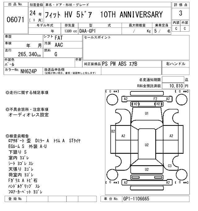 HONDA FIT HYBRID 10TH ANNIVERSARY - лот 6071