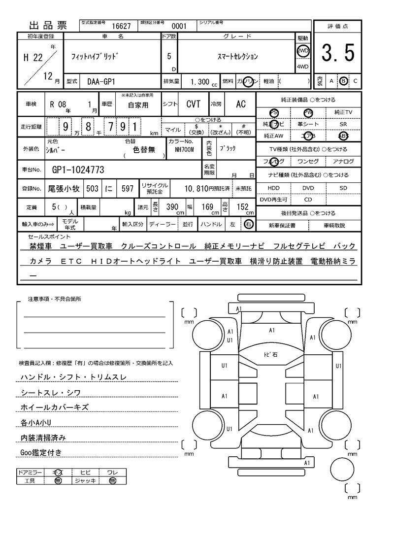 Все аукционы HONDA FIT HYBRID