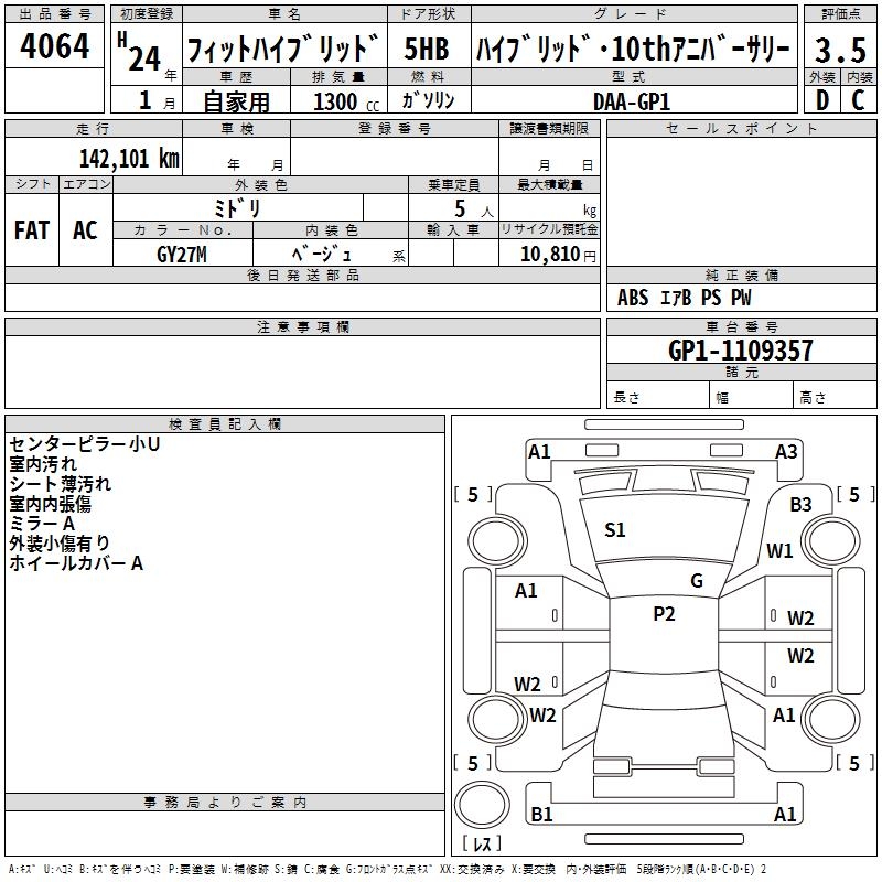HONDA FIT HYBRID HYBRID 10TH ANNIVERSARY - лот 4064