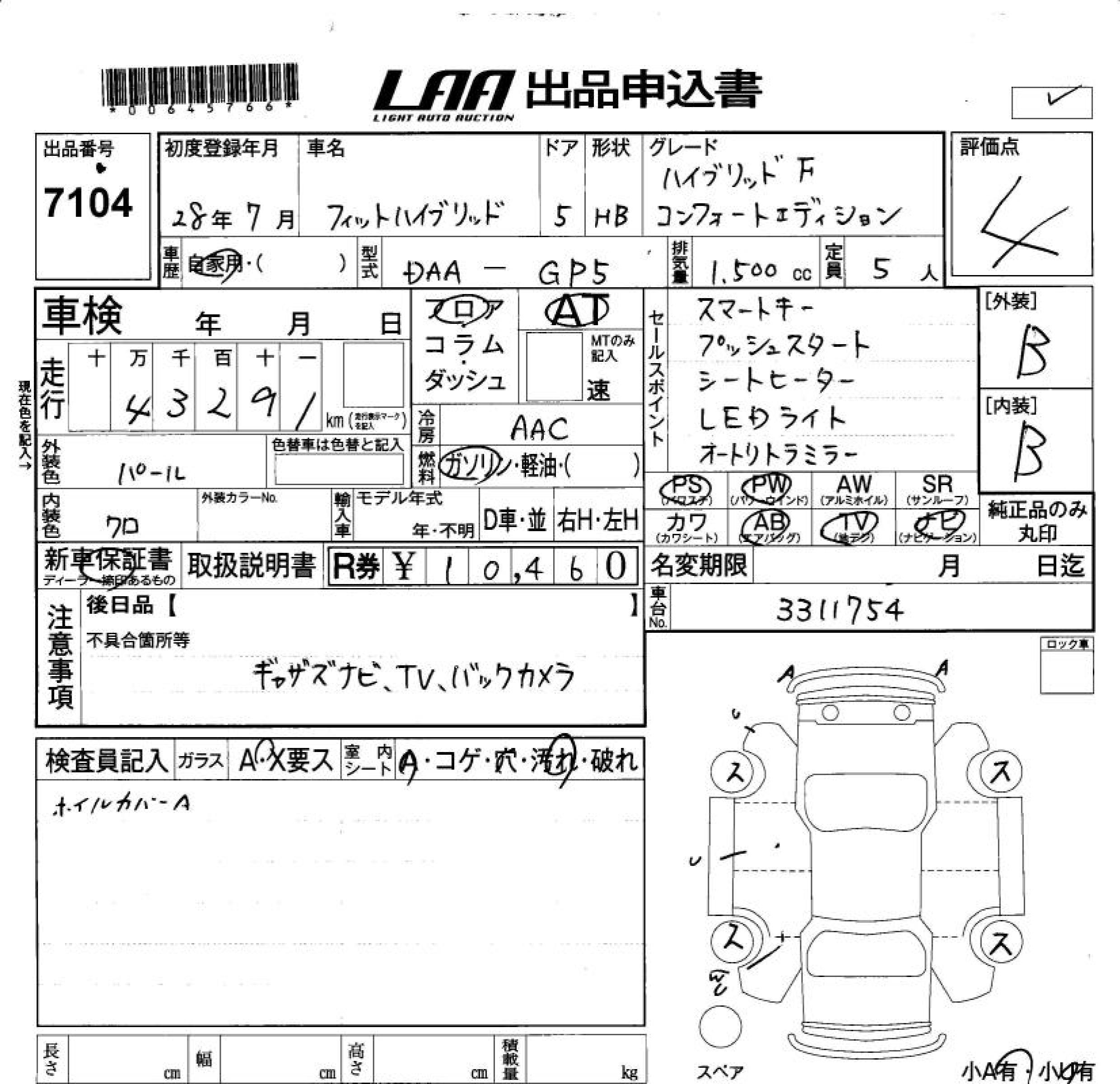 HONDA FIT HYBRID HYBRID *F COMFORT E - лот 7104